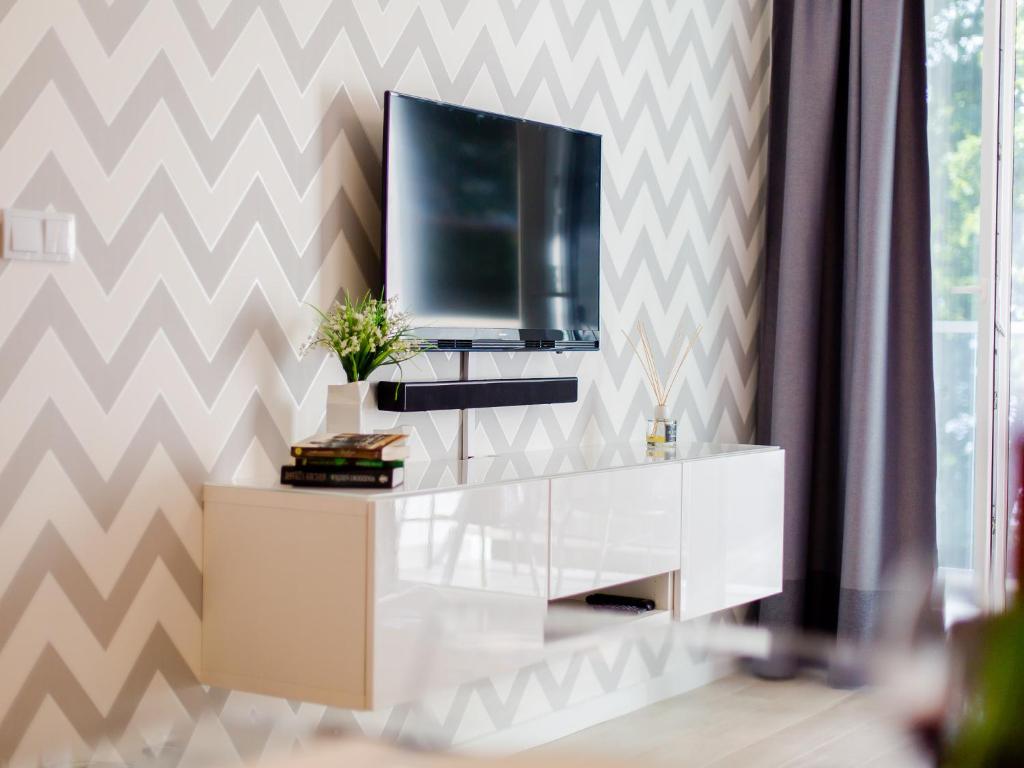 Apartament idealnie nadaje się do pracy zdalnej. Komfort pracy zapewnia szybki, światłowodowy internet (600 mbps), szeroki stół oraz dostępne na życzenie, składane biurko pod laptopa.