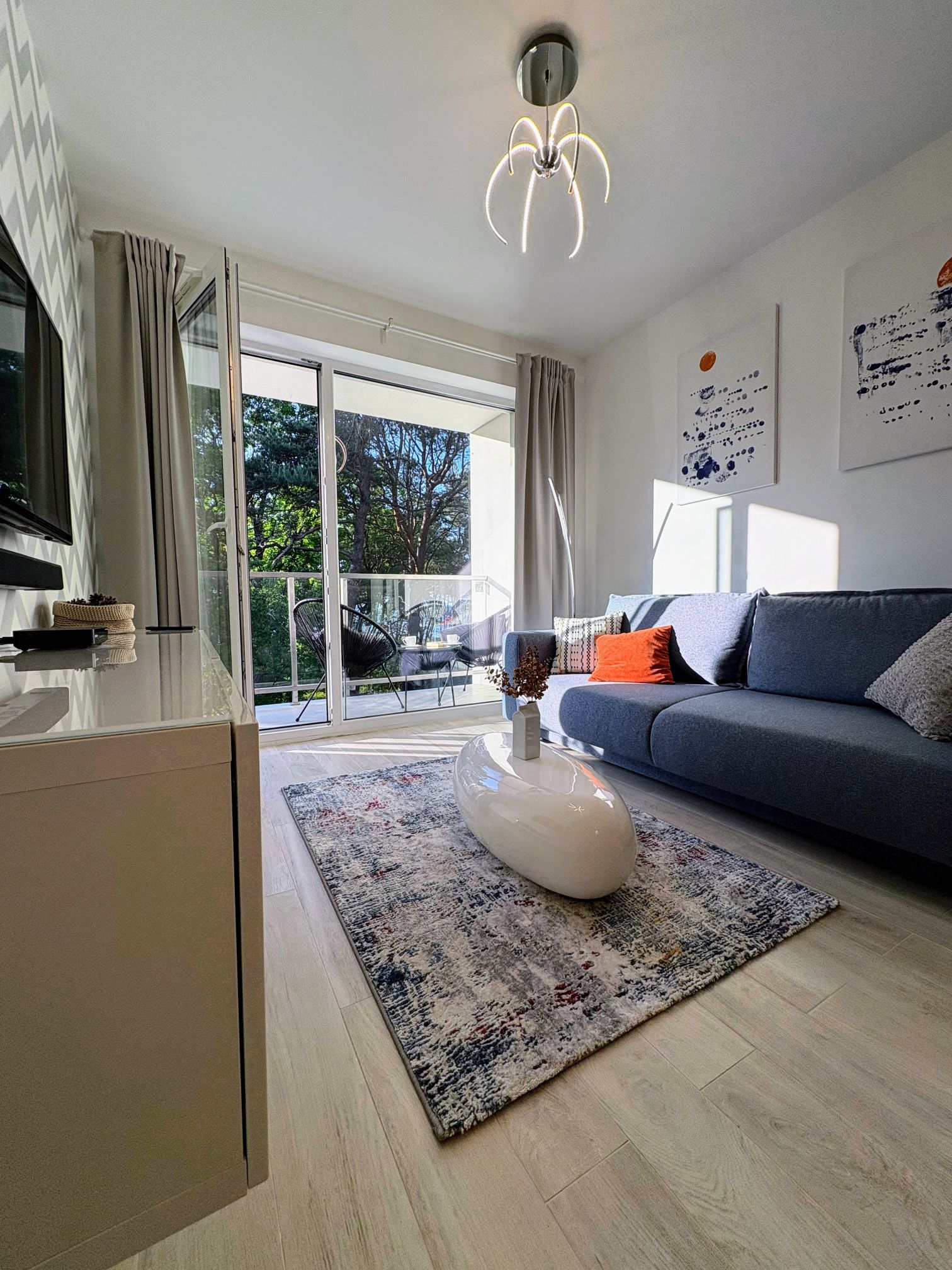 Zapraszamy do naszego apartamentu w malowniczo położonym kompleksie Dwie Sosny w Ustroniu Morskim, w otulinie sosnowego lasu, zaledwie kilkadziesiąt metrów od zejścia na plażę.